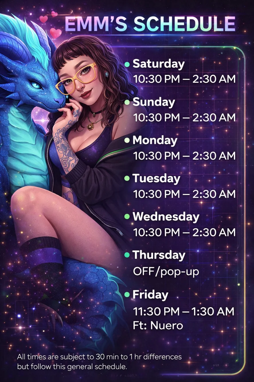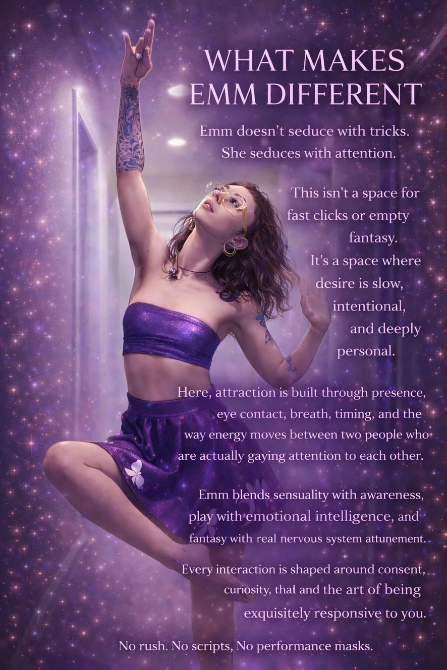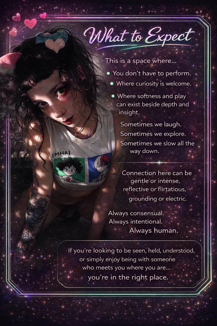 My name is Emm! I love creating an inviting space that offers connection, compassion and comfort, all through the lens of play! I love all people, I love kink, and I love being my authentic self! Lets have some fun!!